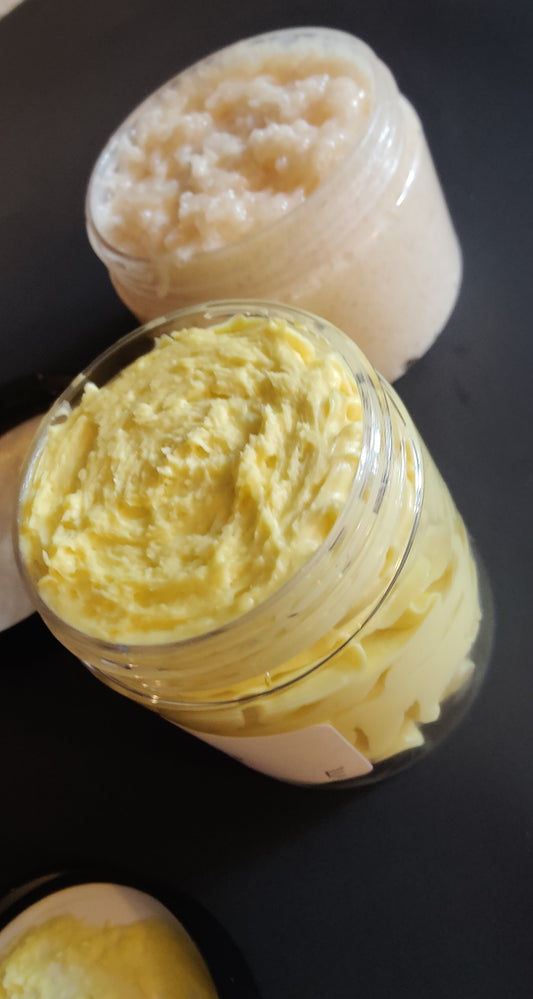 Eczema/Psoriasis Homemade Whipped Body Butter & Foaming Exfoliating Sugar Scrub Set
